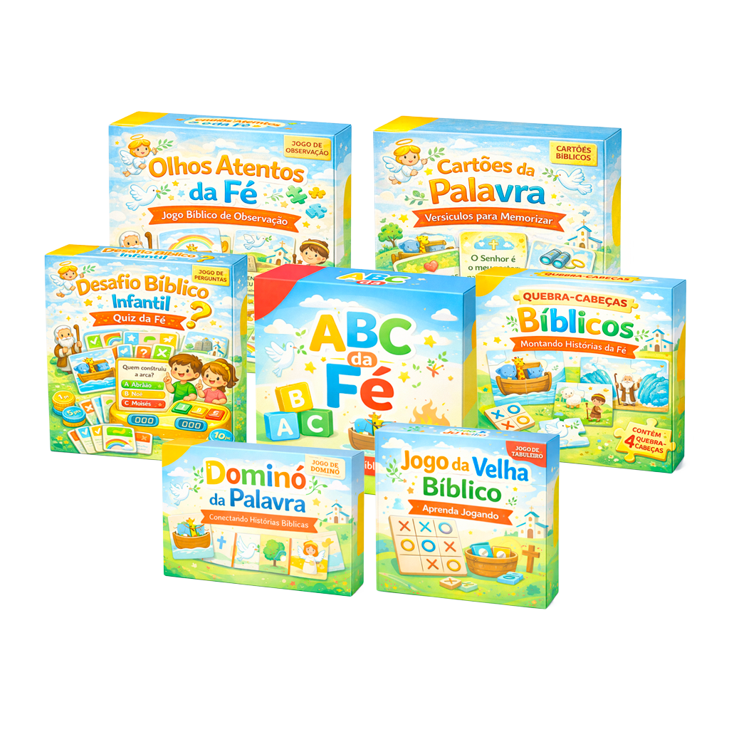 Histórias, atividades e versículos bíblicos criados para ensinar fé, valores e coragem de forma leve e divertida.